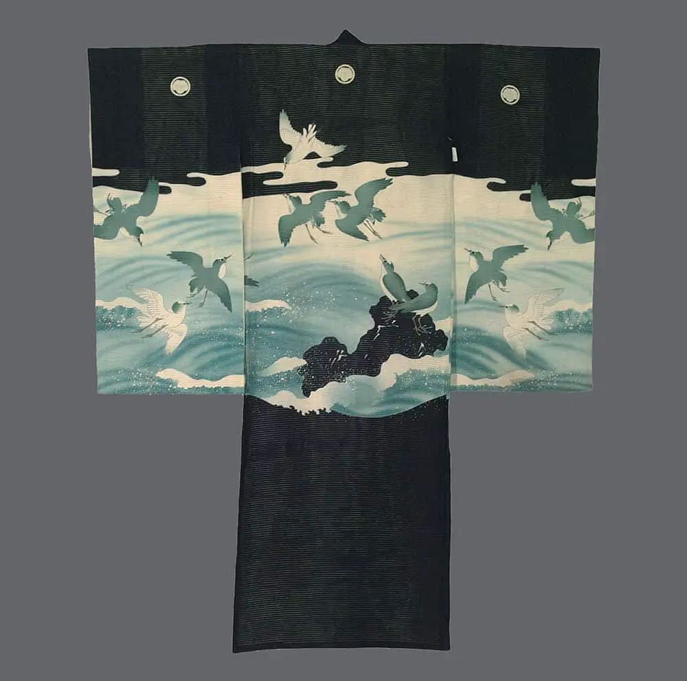 The dimensions of this kimono are 32 inches by 37 inches (81 cm by 94 cm).