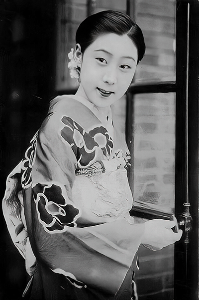 The textile embodies the Taisho Roman aesthetic (referring to the Taisho period, 1912–1926, and early Showa), a time of romantic westernization in Japan. The artwork shows a strong influence of Art Nouveau, visible in the sinuous, curvilinear lines of the vines and the organic, flowing arrangement of the leaves. However, the sheer scale of the flowers—oversized and flattened into graphic shapes—hints at the boldness of Art Deco and early Pop sensibilities. Unlike the delicate, naturalistic flowers of the Edo period, these blooms are modernized and abstract, designed for the "New Woman" of the 1920s and 30s who favored high-contrast, cosmopolitan fashion over conservative tradition.