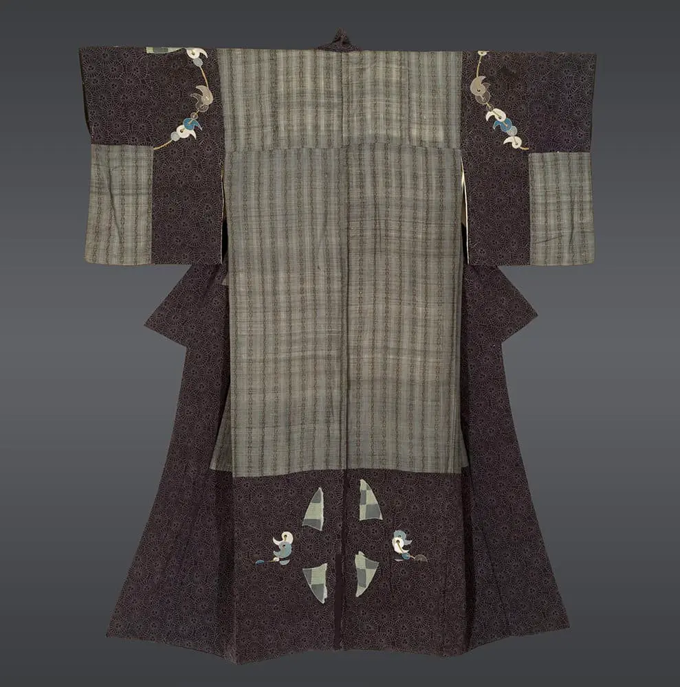 The artistic execution demonstrates the sophisticated interplay between restraint and ornamentation characteristic of Japanese design philosophy. The sparse application of metallic and silk embroidery highlights suggests an approach that values subtlety over ostentation, allowing the painted yuzen work to dominate while the embroidered elements provide textural accents that catch light delicately. This aesthetic sensibility aligns with the wabi-sabi appreciation for understated beauty and the Japanese concept of ma (negative space), where what is left undecorated becomes as important as the decorated areas. The overall composition, with its careful balance of pattern and plain areas, geometric structure and organic motifs, reflects the mature artistic vocabulary of mid-19th century Japan.