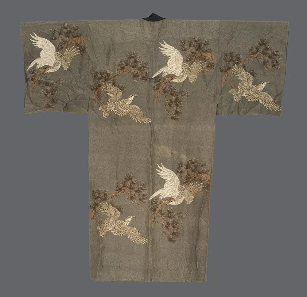 Symbolically, the hawk (taka) represents martial prowess, keen vision, and noble bearing in Japanese culture—qualities traditionally associated with the samurai class and masculine ideals. The hawk embodies active power, strategic thinking, and the ability to strike decisively. The pine trees further reinforce themes of endurance and steadfastness. As an undergarment, this piece would have served as a private assertion of these masculine virtues, reflecting the wearer's inner strength and character during a period when Japan was rapidly modernizing while still honoring traditional warrior values.