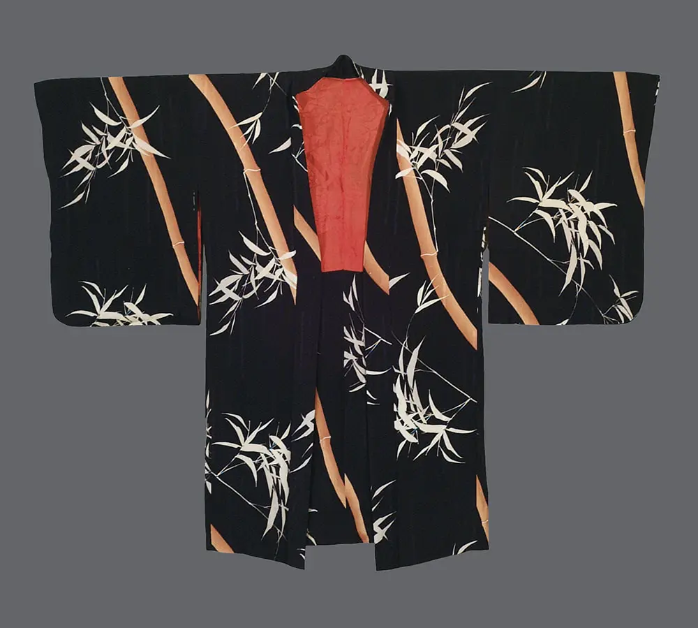 The aesthetic sensibility reflects the influence of Art Deco's geometric stylization while maintaining the traditional Japanese appreciation for natural motifs. The bold contrast between the dark background and the luminous bamboo creates a dramatic visual impact that echoes the period's modernist tendencies toward simplified forms and striking color relationships.